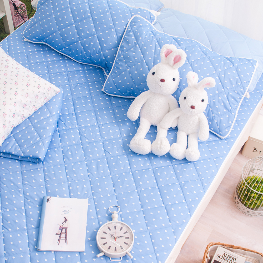 OLIVIA 單人 愛心 藍 磨毛超細纖維平單式保潔墊 台灣製